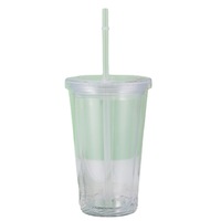 مشروب شفاف ، إدراج بطاقة مسحوق لامع مزين بالترتر ، كوب عصير صيفي بغطاء ،