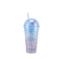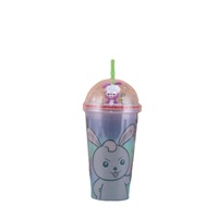 漫画ダブルレイヤー大容量プラスチックカップ、かわいい子供の夏のストローカップ、屋外ポータブル女の子人形カップ