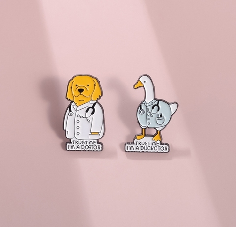 เข็มกลัดรูปสุนัขรูปเป็ดแบบใหม่เข็มกลัดรูปสัตว์น่ารักตัวอักษรโลหะเครื่องประดับเสื้อผ้า