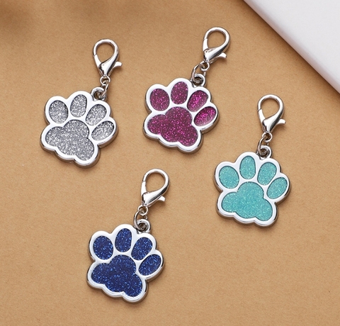 ป้ายโลหะสังกะสีสำหรับสัตว์เลี้ยงมีกลิตเตอร์สำหรับสุนัขป้าย ID ทำจากโลหะผสมสังกะสีมีกลิตเตอร์ติดเท้าสุนัขแท็กสุนัข